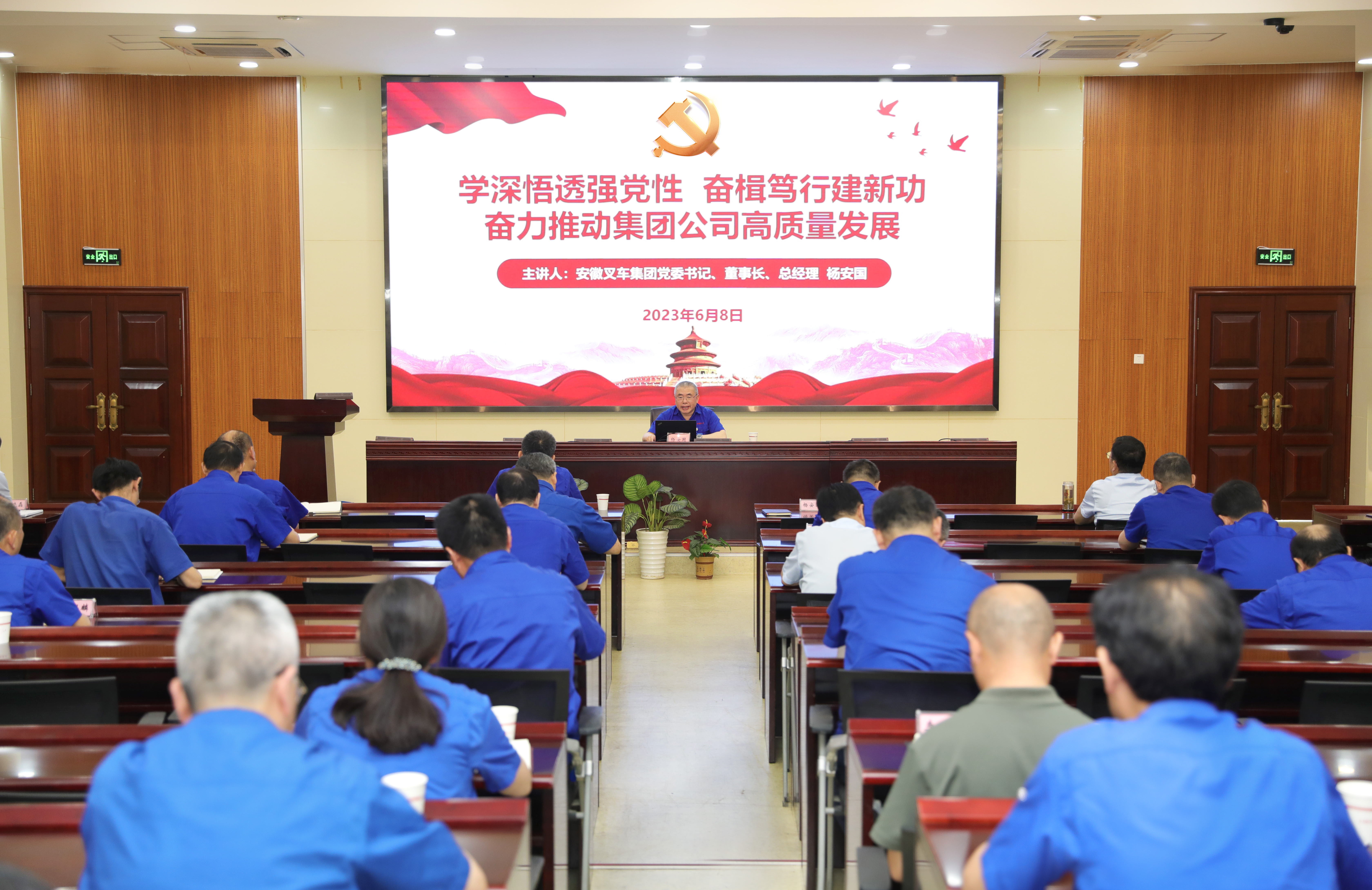 為推動學(xué)習(xí)貫徹習(xí)近平新時代中國特色社會主義思想主題教育走深做實,6月8日下午,安徽叉車集團(tuán)黨委召開主題教育專題黨課報告會。安徽叉車集團(tuán)黨委書記、董事長、總經(jīng)理楊安國作《學(xué)深悟透強(qiáng)黨性 奮楫篤行建新功 奮力推動集團(tuán)公司高質(zhì)量發(fā)展》專題黨課報告。安徽...